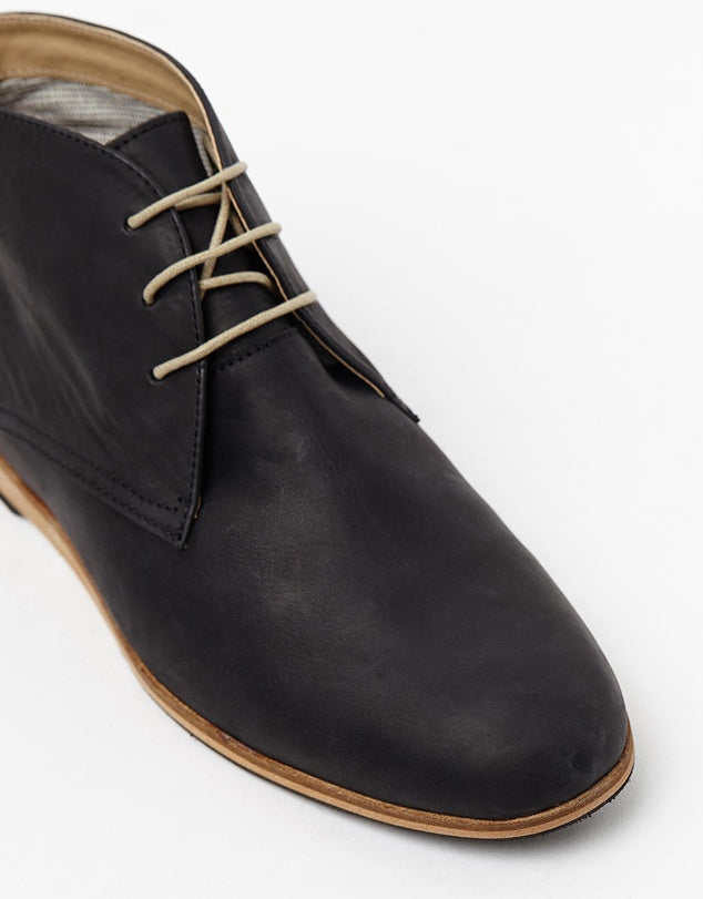 This is how you wear boots in warmer weather. Viper’s clean lines are crafted in smooth black leather, contrasted with natural laces and wedge soles. They’ll pair equally well with your weekday-best as they will with weekend leisure looks.